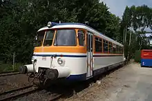 The Olef Valley Railway (from Kall to Hellenthal) stopped at Schleiden station; regular passenger services were discontinued by Deutsche Bundesbahn in 1981. Because of the Eifel National Park, which was newly established in 2004, the state of North Rhine-Westphalia is supporting tourism with a two-year programme of passenger services in the tourist season on Sundays and public holidays. These services terminated in 2004 in the district of Gemünd, and in 2005 they continued to Schleiden. The regional railway was managed by the Verkehrsverbund Rhein-Sieg; Rurtalbahn was the operator. Regular traffic ended on 16 October 2005. Since 2006 services have been operated privately as a museum railway in the summer season, with the 2008 season being operated by the Rhein-Sieg-Eisenbahn. From 2010, the trains will run again to Hellenthal station, using an historic MAN railbus. Due to massive damage caused by the 2021 European floods, museum railway services were suspended.[6]
