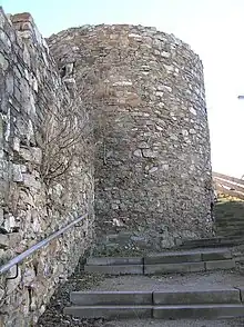 On the road to Kröftel (on the old sports field) there used to be a youth hostel, known as the Kreisjugendheim, operated by the Main-Taunus district. It was built during the Nazi era for the Gau of Rhein-Main-Lahn-Fulda.[7] After 1945, for a period of many years, young people from Germany and abroad (mainly from France) went to Schloßborn on holiday, to relax, or to attend conferences. In the 1950s, the building also housed a few orphaned children from families in the Main-Taunus district under the leadership of social worker Sophie Schönig. It was renamed the Kennedyheim;[7] The Beatles took a relaxation break there after a European tour.[8] It remained in use until the 1970s[7] but was later demolished and replaced by single-family homes.[3] The remains of the old wall and a tower can still be seen.[3]