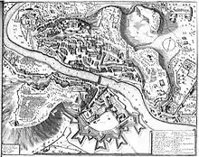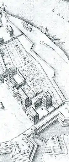 After the arrest of Wolf Dietrich von Raitenau, his successor and nephew Markus Sittich von Hohenems drove Salome Alt and her children from Altenau palace. To erase the memory of his predecessor he renamed the palace Mirabell Palace. He avoided the palace but his successor, Paris Lodron, extended the palace together with its gardens into a new, strong fortification on the right bank of the Salzach, as can be clearly seen in a panorama of the city by Matthäus Merian the Elder from 1656. Lodron himself enjoyed staying at the palace and also died there. Maria Sidonia von Raitenau, née Freiin von Welsperg-Primör, spent her later years between 1639 and 1646 there with her grandchildren Maria Anna Katharina and Rudolf Hannibal; she had taken over their guardianship from their mother, Maria Jakobea, who showed "little love" for them.[3]