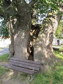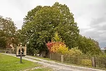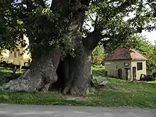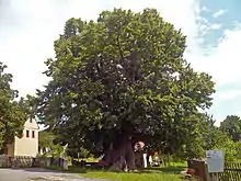 The lime tree in the center of the village has been an integral part of village life for centuries, surrounded by numerous stories, legends, and customs. It is believed that in the past, meetings of the municipal court were held under the lime tree, although there is no written evidence to confirm this.[4] According to local folklore, the lime tree grants one wish per year to those who quietly sit beneath it.[6] During weddings, the bridal couples line up with the wedding party and traditionally gather in front of the lime tree for a group photo. Additionally, it is a custom in the village for the deceased to be carried past the lime tree on their last journey, paying tribute to the enduring presence of the tree in the community.[6]
