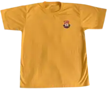 The sports uniform usually has the school's logo on the front of the shirt and an abbreviation of the school's name on the pants.