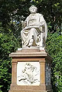 In 1862 the Wiener Männergesang-Verein ("Vienna Men's Choral Society") set up a fund for the erection of a monument to Schubert. Funds were raised during the following years, partly from concerts and from donations from other choral societies. After some discussion about the location of the memorial in the Stadtpark ("city park"), and whether it should be a statue or a portrait relief, the sculptor Carl Kundmann was commissioned to create the statue.[1][2]
