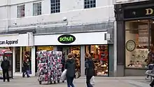schuh (pronounced /ʃu/, like "shoe") is a Scottish footwear retailer based in Livingston, Scotland. It has 132 stores in the United Kingdom and Ireland.[1] The company is predominantly a branded shoe stockist, selling over 80 brands, including: Converse, Vans, UGG, Nike, Adidas as well as its own schuh label.