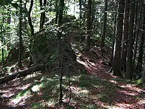 The Schultiskopf lies in the highest part of the Central Black Forest and, at 1,076.6 m above sea level (NHN),[1] is a ridge-like subpeak of the Obereck (1,176.6 m above sea level (NHN)[1]).