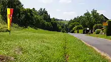 ![]() Geographical centre point of the European Union marked by the flag pole on the bank of the Schulzengrundbach in Westerngrund-Oberwestern
