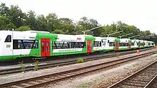 Since 2004 rail services on the line between Schweinfurt and Meiningen have been operated by the Erfurter Bahn (EB) whose Lower Franconia Shuttle (Unterfranken-Shuttle), line EB 4, runs every two hours between Schweinfurt and Mellrichstadt from Monday to Friday and, on Saturday am and Sunday pm, almost hourly. In addition DB Regionalexpress trains run every two hours from Erfurt to Schweinfurt (RE 7) (on this section from Ritschenhausen). Since 2008 the DB has used tilting trains which attain speeds of up to 160 km/h. The Erfurter Bahn also operates the EB 5 Regionalbahn route (the Franconian Saale Valley railway or Fränkische Saaletalbahn) using the Unterfranken-Shuttle on the Schweinfurth–Eberhausen line and running it through to Bad Kissingen and Gemünden am Main. The „Unterfranken-Shuttle“ also calls at Schweinfurt-Mitte and Schweinfurt-Stadt via Schweinfurt Hauptbahnhof. The DB uses Class 612 DMUs exclusively whilst the Erfurter Bahn operates Stadler Regio-Shuttle RS1 multiples.