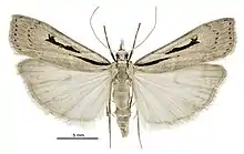 This article incorporates text from this source, which is in the public domain. - ↑ Meyrick, E. (1913). "A Revision of the New Zealand Pyralidina". Transactions and Proceedings of the New Zealand Institute. 45: 30–51 – via Biodiversity Heritage Library.