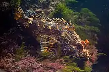 Scorpaenini is a tribe of marine ray-finned fishes, one of two tribes in the subfamily Scorpaeninae. This tribe contains the "typical" or "true" scorpionfishes. The taxonomy of the scorpionfishes is in some flux, the 5th Edition of Fishes of the World treats this taxa as a tribe within the subfamily Scorpaeninae of the family Scorpaenidae within the order Scorpaeniformes,[2] while other authorities treat it as a subfamily within a reduced family Scorpaenidae within the suborder Scorpaenoidei,[3] or the superfamily Scorpaenoidea within the order Perciformes.[4]