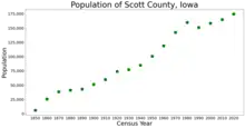 The US Census Bureau estimated Scott County's population at 170,385 in 2013, fourth fastest-growing out of Iowa's 99 counties after Dallas County, a western suburb of Des Moines: Johnson, Polk, followed by Warren County being the top five.[15]