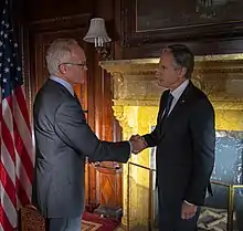 Pelley (left) speaks with US Secretary of State Antony Blinken for 60 Minutes in 2022