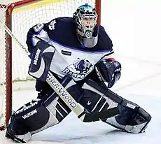 Stirling attended Brown University from 1996 to 2000 where he played NCAA Division I college hockey with the Brown Bears men's ice hockey team.[2] Undrafted, Stirling began his professional career in 2000 by joining the Trenton Titans of the ECHL, winning the John A. Daley Trophy as the ECHL Rookie of the Year. He went on to play parts of six seasons in the ECHL, being twice selected the ECHL Goaltender of the Year, and being named the ECHL Most Valuable Player for the 2003–04 season. He also backstopped the Atlantic City Boardwalk Bullies to capture the 2003 Kelly Cup as ECHL Champions. In November 2010, Stirling was named to the ECHL All-Decade Team.[3]