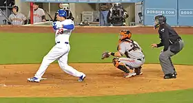 In 2015, he hit .239/.317/.383 in 96 games with six homers and 30 RBI.[1] He battled left mid-back and right wrist issues for much of the season, which negatively affected his performance.[17][18] Following the season, he agreed to a one-year, $1.225 million contract with the Dodgers for 2016, avoiding salary arbitration.[19]