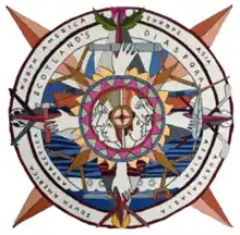 The Scottish Diaspora Tapestry (Scottish Gaelic: Grèis-bhrat Diaspora na h-Alba) is a large embroidery, 153 metres (502 ft) in length, crafted from 305 panels that were embroidered in 34 countries. It was the second major tapestry project to have originated from the Prestoungrange Arts Festival in Prestonpans, East Lothian, Scotland. Work on the panels began in 2012. A version of the tapestry was exhibited across Scotland in 2014 for the Homecoming. The tapestry was displayed in locations around Western Europe the following year. November 2015 was the first time that all 305 panels were shown together. In 2016 and 2017 the tapestry toured across Australia and Canada and returned to Edinburgh to go on display in May 2017.[1]