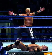 After leaving WWE, Garland worked two shows for Puerto Rico's International Wrestling Association (IWA) in mid-June 2007.[24] He then wrestled on the independent circuit, working for at least 31 promotions in 11 countries as Scotty 2 Hotty and Scotty the Hotty.[25] In 2014 and 2015 Garland continued teaming with Grand Master Sexay in the independents, England and Germany. On December 6, 2014, Garland, as Scotty 2 Hotty, made his debut for the Japanese Pro Wrestling Noah promotion, teaming with Funaki and Super Crazy in a six-man tag team match, where they defeated Pesadilla, Yoshinari Ogawa and Zack Sabre Jr., with Scotty pinning Pesadilla for the win.[26] He would retire from wrestling in 2016, when he was hired by WWE as a coach for their development territory NXT.
