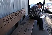 A coal miner completes a screening survey for coalworker's pneumoconiosis.