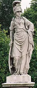 | 13 | Hygieia | Joseph Baptist Hagenauer | Hygieia was the goddess of health and cleanliness.[21] She was the daughter of Asclepius, the god of healing,[21] and Epione, the goddess of soothing of pain. Hygieia had five sisters who also represented aspects of Apollo's healing: Panacea the goddess of universal remedy, Iaso the goddess of recuperation, Aceso the goddess of the healing process, and Aglaea the goddess of beauty.[22] | ![]() |