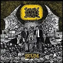 Scum is the debut studio album by English grindcore band Napalm Death, released on 1 July 1987 by Earache Records. The two sides of the record were recorded by two different lineups in sessions separated by about a year; the only musician in both incarnations was drummer Mick Harris. The two sides are very different, and the two taken together serve to bridge stylistic elements of heavy metal and punk rock. While the songs on the A-side are influenced heavily by hardcore punk and anarcho-punk, the vocals and lower-tuned electric guitars on the B-side anticipate subsequent developments in extreme metal. Loudwire put it in the list of the best 10 metal albums of 1987.