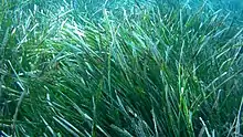 There are about 60 species of fully marine seagrasses belonging to four families (Posidoniaceae, Zosteraceae, Hydrocharitaceae and Cymodoceaceae), all in the order Alismatales (in the class of monocotyledons).[8] Seagrasses beds or meadows can be either made up of a single species (monospecific) or mixed. In temperate areas one or a few species usually dominate (like the eelgrass Zostera marina in the North Atlantic), whereas tropical beds are usually more diverse, with up to thirteen species recorded in the Philippines. Like all autotrophic plants, seagrasses photosynthesize, in the submerged photic zone. Most species undergo submarine pollination and complete their life cycle underwater.[9]