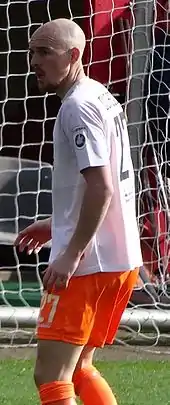 Clohessy opted to join Scottish Premiership club Kilmarnock on a free transfer on 11 August 2013.[64] He made his club debut on 17 August against St Mirren in a 1–1 draw, setting up Kris Boyd for Killie's goal.[65] He provided another assist for Boyd in Kilmarnock's 1–1 draw with Partick Thistle on 21 September,[66] before scoring his first goal for the club in a 5–2 defeat by Celtic on 28 September.[67] He picked up his second goal of the campaign as Kilmarnock fell to a 3–1 defeat at the hands of St Johnstone on 8 November.[68] Inconsistent performances led to Clohessy being replaced by youngster Ross Barbour in the second half of the season, and he struggled to regain his first-team position. After making 24 appearances, Clohessy was released by the club in June 2014.[69]
