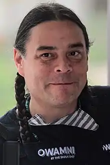 Sean Sherman (born 1974)[1] is an Oglala Lakota Sioux chef, cookbook author, forager, and promoter of indigenous cuisine.[2][3] Sherman founded the indigenous food education business and caterer The Sioux Chef and cofounded with then-partner Dana Thompson the nonprofit North American Traditional Indigenous Food Systems (NĀTIFS). He received a James Beard Foundation Leadership Award and his 2017 cookbook, The Sioux Chef's Indigenous Kitchen, won the 2018 James Beard Award for Best American Cookbook. In 2022 the restaurant he co-owned with Thompson, Owamni, won the James Beard Award for Best New Restaurant.