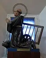 A statue of the Blessed Sebastián outside the Franciscan church of Puebla where his incorrupt body is preserved for veneration