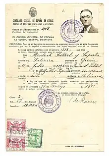 - ↑ "Testimony of Isaac Revah, on the action of the Spanish Consul in Athens in 1943, Sebastian de Romero Radigales, who obtained the release from Bergen Belsen of a group of Spanish Jews". eSefarad (in Spanish). 8 September 2012. Retrieved 2020-11-26.