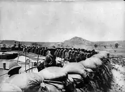 French and British forces entrenched themselves around the forts at Garua and began to lay siege to the position on 31 May 1915. Following an assessment of the German defenses, Cunliffe came to the conclusion that the weakest positions could be attacked from the north. He concentrated his attacks there and a series of trenches were dug opposite these weaker positions. Each night sapping and mining operations would take place weakening the German defenses even further. The British and French trenches moved closer to the forts as these operations went on.[1][2] The Germans responded to this with constant but somewhat ineffective fire from the forts.