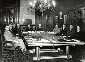 ![]() The first meeting of the Second De Geer cabinet on 6 September 1939 | |