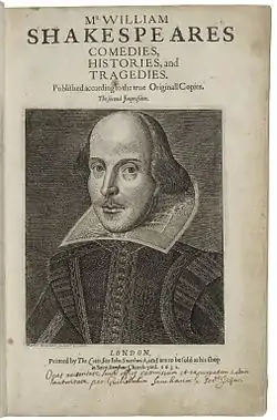 The major partners in the First Folio had passed from the publishing scene by the time of the Second Folio: William Jaggard—official printer to the city of London (17 December 1610)—had died in 1623, and his son Isaac died in 1627.[1] Edward Blount, the third major partner, had sold his rights to Shakespearean plays to Robert Allot in 1630, and then died in 1632. Allot thus became the prime mover in the creation of the Second Folio. The two minor partners in the First Folio, William Aspley and John Smethwick, continued as partners in the Second Folio syndicate; Aspley owned the rights to Much Ado About Nothing and Henry IV, Part 2, while Smethwick owned the rights to Love's Labour's Lost, Romeo and Juliet, Hamlet, and The Taming of the Shrew. Allot, Aspley, and Smethwick were joined by two other publishers: Richard Hawkins and Richard Meighen.[2] (Hawkins owned the rights to Othello, while Meighen owned the rights to The Merry Wives of Windsor.)