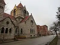 The congregation was founded in 1838 by the Old School Presbytery of St. Louis.[2] It has had three buildings. Its first building, designed in the Greek Revival architectural style and completed in 1840, was located at Fifth (Broadway) and Walnut Streets.[3] Thirty years later, in 1870, a second church building was erected on Lucas Place at Seventeenth Street.[3]