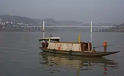 The Second Wanzhou Yangtze River Bridge (万州长江二桥) is a suspension bridge over the Yangtze River in Wanzhou District of Chongqing, China. Completed in 2004, it has a main span of 580 metres (1,900 ft) places it among the longest suspension spans in the world.[1]