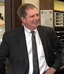 The Secretary of State of New Hampshire is a constitutional officer in the U.S. state of New Hampshire and serves as the exclusive head of the New Hampshire Department of State. The Secretary is third in line for succession as acting Governor of New Hampshire, following the state's President of the Senate and Speaker of the House.[1] The Secretary oversees all state elections, including certifying the results, and keeps the official records of the state.[1] The Secretary is, by statute, the only person who can authorize use of the State Seal.[2]