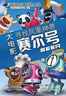 Seer (Chinese: 赛尔号大电影之寻找凤凰神兽) is a 2011 Chinese animated fantasy adventure film based on the online game of the same name.[2][3] It is about robots on an airship called Seer where they travel to find a legendary phoenix in a vast universe, and they also must fight off evil space pirates who are blocking their way. It was released on July 28, 2011.[4] The film is the first in a film series, being followed by Seer 2 (2012), Seer the Movie 3: Heroes Alliance (2013), Seer 4 (2014), Seer 5: Rise of Thunder (2015), Seer 6: Invincible Puni (2017), and Seer 7: Crazy Intelligence (2019).[5]