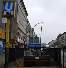 Seestraße is a station in the Wedding district of Berlin which serves the U6 and is operated by the BVG. It lies at the busy intersection of Müllerstraße and Seestraße, which are two of Wedding's principal shopping streets and thoroughfares.