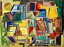 His early works dominated by triangles squares and cubes and avoided curves much as possible refer the Big Ben painting on Bonjour French magazine. Traveling of light in different density and its refraction influenced him a lot. He did not hesitate to apply this in many of large canvases which resulted in figurative cubism and refractive effect in his paintings.