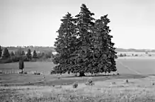 Spruce fir with three trunks at Åsa prehistoric burial ground at Selaön island