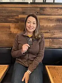 ![]() Selenne Bañuelos holding the EvenQuads card that features her, Jan 2023. | |