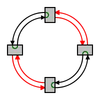 The system consists of a ring of bidirectional links between a set of stations, typically using optical fiber communications. In normal use, traffic is dispatched in the direction of the shortest path towards its destination. In the event of the loss of a link, or of an entire station, the two nearest surviving stations "loop back" their ends of the ring. In this way, traffic can still travel to all surviving parts of the ring, even if it has to travel "the long way round".
