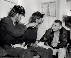 Kryuchkovsky, Poplavsky, Ziganshin consuming some soup and bread shortly after being rescued.