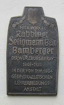 In Würzburg he rapidly opened a yeshiva. In 1855 he opened an elementary school, the first of its kind in Germany (previously children had been instructed in small synagogue schools). In 1864 he also opened a seminary specifically for the training of teachers of Jewish subjects, of which there was a shortage in Germany. This seminary was called Bais Medrash L'Morim (בית מדרש למורים - A House of Learning for Teachers) or in German Israelitische-Lehrer-Bildungs-Anstalt ("Jewish Teacher Training Institute") often referred to by its initials I.L.B.A.[1][2][3] ILBA survived until 1938; its teachers and students were deported to the Buchenwald and Dachau concentration camps. [4]
