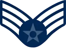 Formerly, from 1976 to 1991, this grade was divided into ranks with separate titles: sergeant (referred to unofficially but almost universally within the USAF as "buck sergeant" or simply "buck"), a non-commissioned officer; and senior airman, which is the equivalent of specialist, a non-supervisory rank. Senior airmen were promoted to sergeant after 12 months' TIG and completion of the now-defunct Non-commissioned Officer Preparatory Course. This schism reflected a desire by the Air Force in 1976 to subdivide enlisted ranks into a three-tier organization, a move which was resisted by the Chief Master Sergeant of the Air Force, resulting in the compromise dual-rank that lasted fifteen years. The last Air Force promotions to sergeant were effective 1 April 1991. Those personnel who had been promoted to sergeant prior to this cut off date retained the rank until being promoted to a higher rank or leaving the service. There are no longer any personnel on active duty who hold this rank. Due to high year of tenure rules in effect at the time, the last person to hold the rank was forced out of the Air Force on 23 March 1998.[3] Sergeants wore the same chevrons as present-day senior airmen. Senior airmen wore similar chevrons, but with a blue (green on the fatigue or battle dress uniform) subdued central star, as did all airmen in the lowest tier.