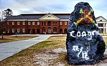 - ↑ Brian Benson (February 19, 2017), Wayland: Seniors paint over rock's graffiti, Wayland, Mass.: Wayland Wicked Local