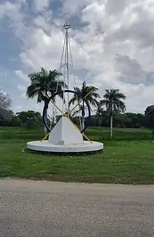 After becoming president of Suriname, Bouterse designated February 25, the anniversary of the day of the coup d'état, as a national holiday.[17] On the day of the coup, Bouterse's soldiers burned down the Central Police Station of Suriname. The remains of the building now form the Monument of the Revolution, where the wreath-laying ceremony would be held.[18]