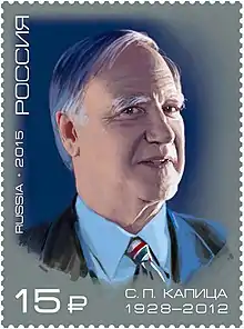 - ↑ "Sergei P. Kapitsa (1928–2012), Physicist, Winner of the State Prize. Moscow". rusmarka.ru.