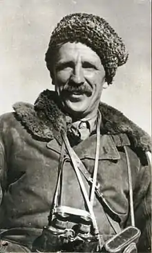 Sergey Pavlovich Tolstov (Russian: Сергей Павлович Толстов; 7 February 1907 – 28 December 1976) was a Russian and Soviet archaeologist and ethnographer. Tolstov was the organizer and the first director (between 1937 and 1969) of the Chorasmian Expedition credited with discovery and investigation of archeological monuments of Khwarezm. He is also the author of the book Old Khwarezm, the seminal work in the field.[1] In 1953, Tolstov was elected the corresponding member of the Academy of Sciences of the Soviet Union.[2]