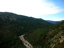 ![]() View of the wooded northern slopes of the range and the Cervol River | |
