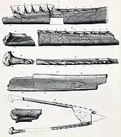 In 1874, Richard Owen named a pair of lower jaws from the collection of Samuel Husband Beckles, found at St Leonards-on-Sea in Sussex, as a new species of Pterodactylus: Pterodactylus sagittirostris. The specific name means "arrowhead-snouted" in Latin, referring to the mandible profile in upper view.[3] In 1888, Edwin Tulley Newton, conforming to the soon to be published pterosaur systematics by Richard Lydekker, renamed the species into Ornithocheirus sagittirostris.[4] In July 1891, the British Museum (Natural History), the present Natural History Museum, bought the piece from the heirs of Beckles.