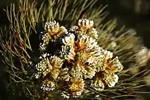Serruria glomerata, the cluster spiderhead, is a flower-bearing shrub that belongs to the genus Serruria and forms part of the fynbos. The plant is native to the Western Cape, it occurs on the Cape Flats and Cape Peninsula. The shrub is erect and grows only 40 cm tall and bears flowers from August to October.