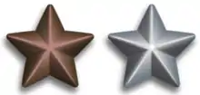A service star is a miniature bronze or silver five-pointed star 316 inch (4.8 mm) in diameter that is authorized to be worn by members of the eight uniformed services of the United States on medals and ribbons to denote an additional award or service period.[1] The service star may also be referred to as a campaign star or battle star depending on which award the star is authorized for and the manner in which the device is used for the award.[2]
