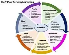 The prospect of expanding and modifying the marketing mix for services first took hold at the inaugural AMA Conference dedicated to Services Marketing in 1981, and built on earlier theoretical works pointing to many important limitations of the 4 Ps concept.[43] Taken collectively, the papers presented at that conference indicate that service marketers were thinking about a revision to the general marketing mix based on an understanding that services were fundamentally different to products, and therefore required different tools and strategies. At the Services Marketing Conference in 1981, Booms and Bitner proposed a model of seven Ps, comprising the original four Ps plus process, people and physical evidence, as being more applicable for services marketing.[44] Since then there have been a number of different proposals for a service marketing mix (with various numbers of Ps – 6 Ps, 7 Ps, 8 Ps, 9 Ps and occasionally more). The model of 7 Ps has gained widespread acceptance, to the extent that some theorists have argued for the 7 Ps framework proposed by Booms and Bitner to be applied to products as a replacement for the four Ps.[45]